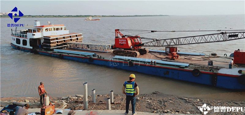 作為中國最暢銷之一的房地產開發商--碧桂園,我們非常榮幸能夠承擔碧桂園控股的項目。本項目位于仰光河,根據環境和使用要求,游艇碼頭采用鋁合金橋、鋼結構浮橋和樁。作為浮式系統,在我廠完成加工,并裝船運到現場,我公司工程師和工人承擔了從卸貨、打樁、安裝、試運行的全部工作,業主對完成的項目非常滿意。
