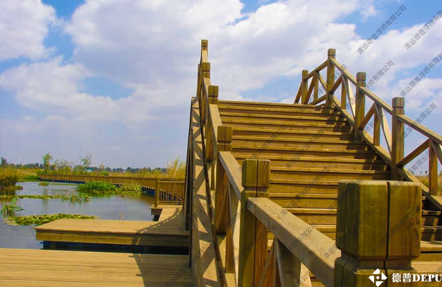 建設規模:浮橋設計總長835米,寬2米,配有水上觀光平臺12個