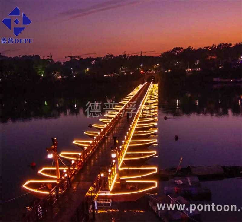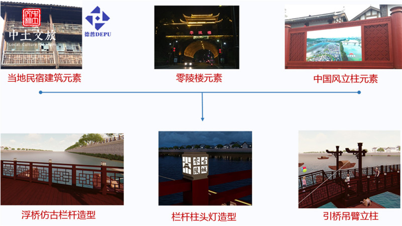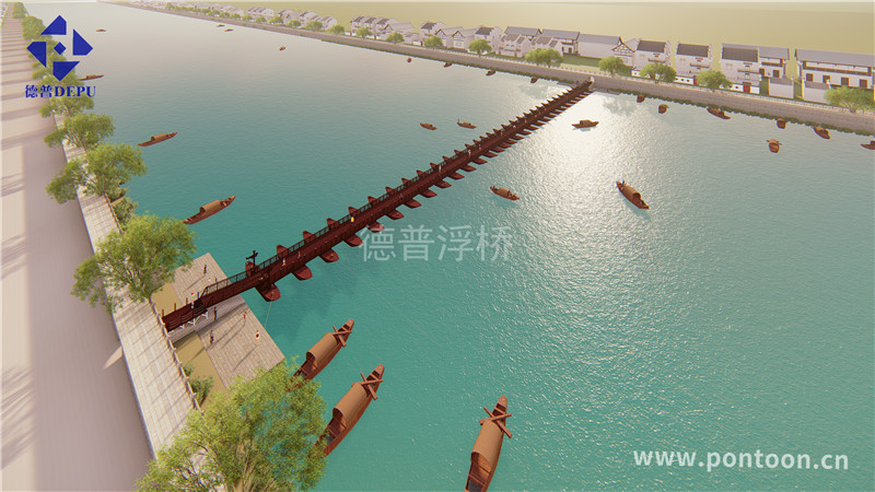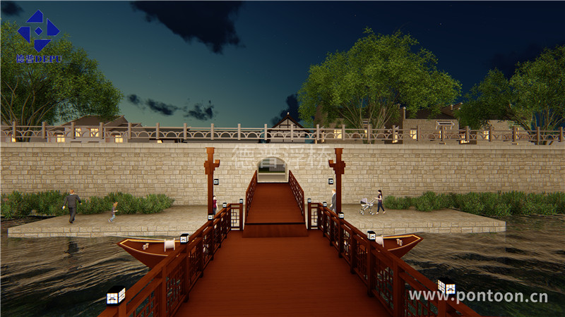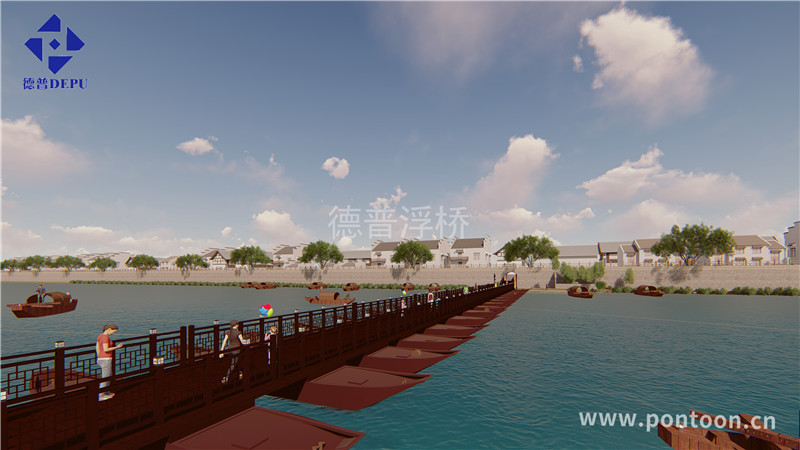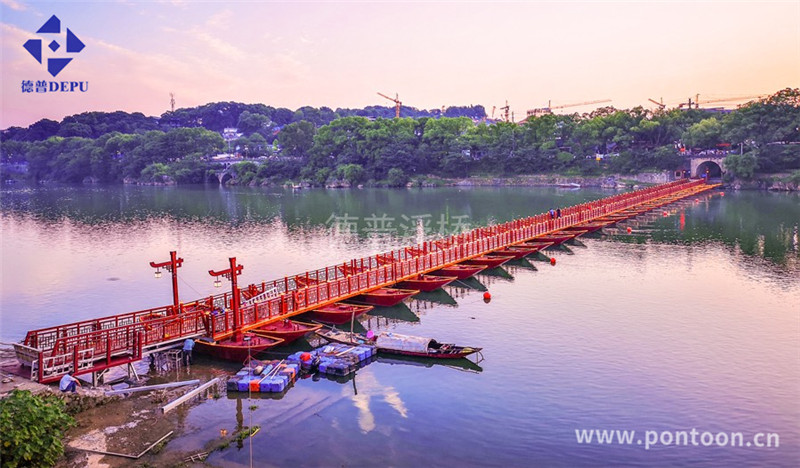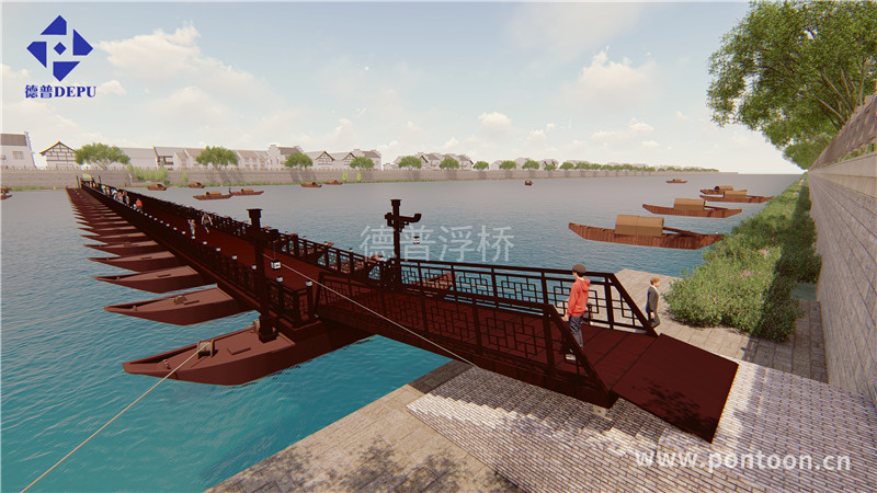 浮橋整體采用仿古設計,與瀟水河兩岸景區的古建筑群完美融合的同時,也更加能體現出霞客渡浮橋的悠久歷史,為零陵古城保留下了一道美麗的風景。