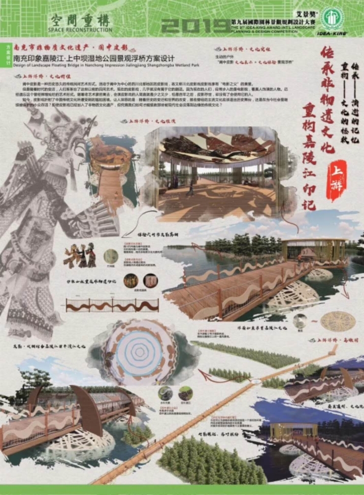 恭賀:我司李設計師,和張設計師主負責的《南充印象嘉陵江.上中壩濕地公園景觀浮橋方案設計》 在中國建筑文化研究會.艾景獎組委會舉辦的第九屆國際園林景觀規劃設計大賽中 獲【年度優秀景觀設計.市政景觀】獎 標簽: