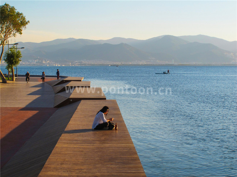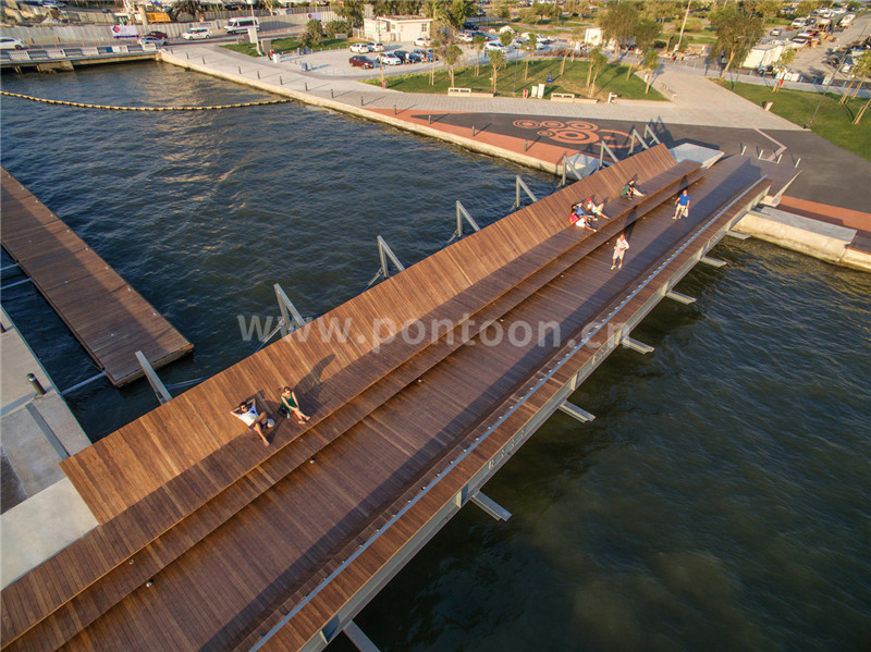 橋梁的弓形截面略呈弓形,并具有特別設計的大梁幾何形狀,使小船可以從下面通過,并可以通往位于小河中的浮船。因此,這種新的城市結構根據其獨特的位置進行定向,可以從一側看到海灣,而從另一側可以看到城市,因此,設計這種建筑物的橫截面是不對稱的。該特殊部分由安裝在鋼架上的多個級聯熱木表面組成,使用戶無論坐著還是張開,都能欣賞到海灣的美景。