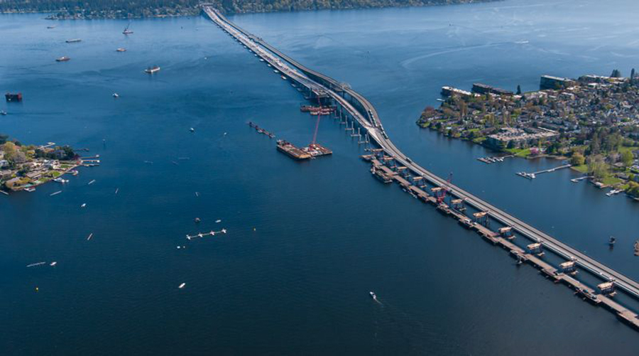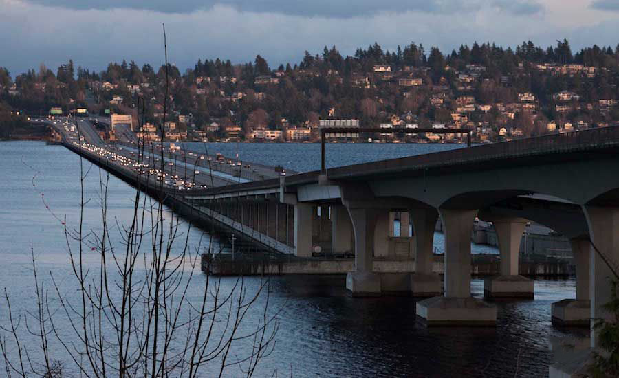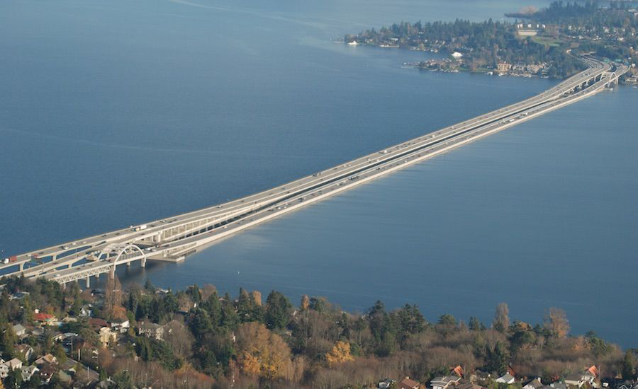 這座橋橫跨90號州際公路的東行車道,穿過華盛頓湖,從西雅圖到華盛頓州的Mercer島。世界上第一座使用混凝土浮想建造的浮橋,當時耗資9300萬美元。