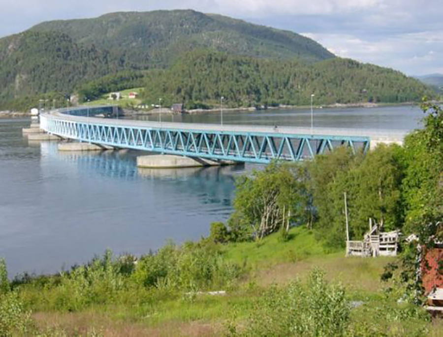 這座橋連接著Asp和oslash島; 橫跨一個水深320米的峽灣。工程公司Johns.Holt設計了浮橋和橋臺,DNV Veritec設計了上部鋼結構,挪威承包商建造了混凝土浮橋,Aker Verdal建造了鋼管桁架上部結構,它的基礎是七個混凝土浮橋基礎。