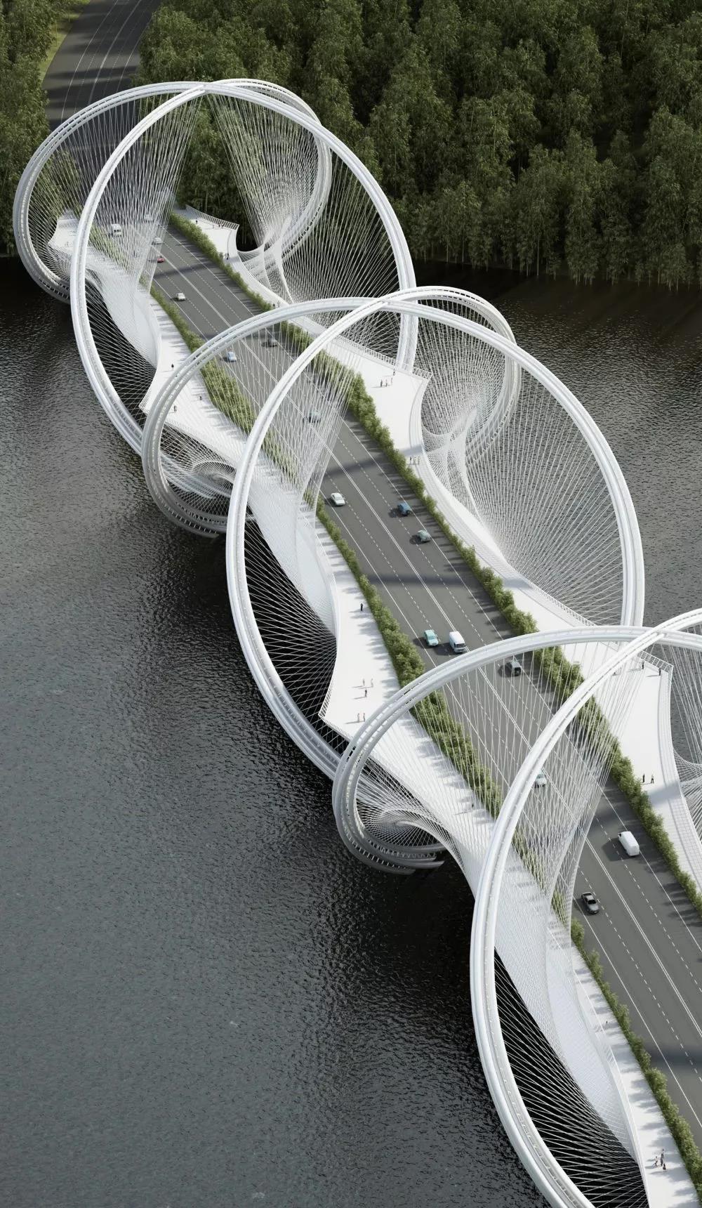 大橋地處北京高密度的市區(qū)與城市北側跌宕河谷之間的門戶位置。