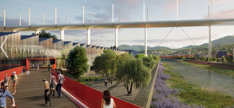 紅色大鐵環將山谷兩岸連接在一起,并發揮著復合的多功能效用。
