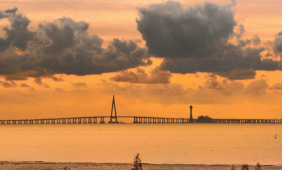 杭州灣跨海大橋位于中國浙江省杭州灣之上 北起嘉興市海鹽鄭家埭村的平湖立交 上跨杭州灣海域,南至寧波市慈溪水路灣的庵東樞紐立交; 海上平臺“海天一洲”位于杭州灣大橋中部 南航道以南1.7千米處 途經該橋的線路為沈海高速公路(國家高速G15)。 杭州灣跨海大橋大橋總體平面為S形曲線 由北航道橋、南航道橋、引橋及海中平臺組成; 南北航道的通航孔橋處各呈一拱形,具有起伏跌宕的立面形狀。 標簽: