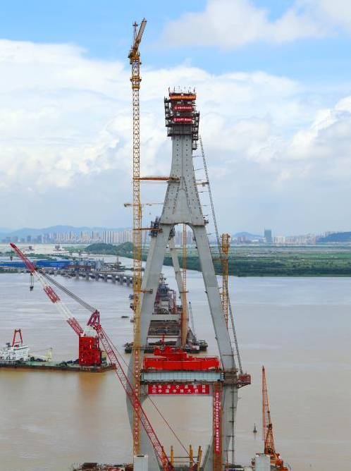 隨著最后一車混凝土澆筑完成,珠海洪鶴大橋8號橋塔于2019年7月成功封頂,