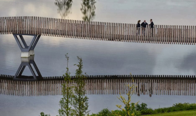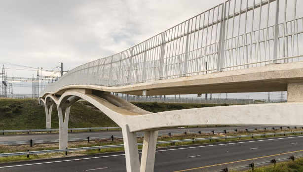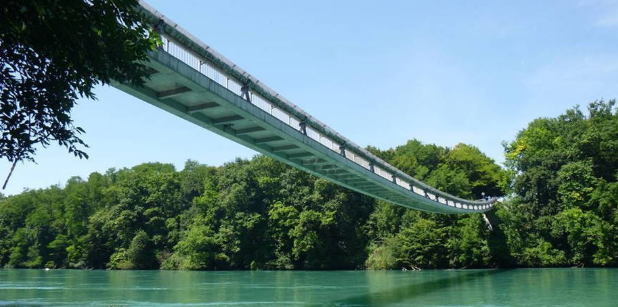 應(yīng)力帶橋一般是步行橋和自行車道比較適用,與簡單的懸索橋不同,應(yīng)力帶在預(yù)應(yīng)力和承受荷載時受到拉力而繃緊,這增加了上部橋面板的剛度。 這種橋通常由鋼筋索將上部混凝土板張緊而制成。